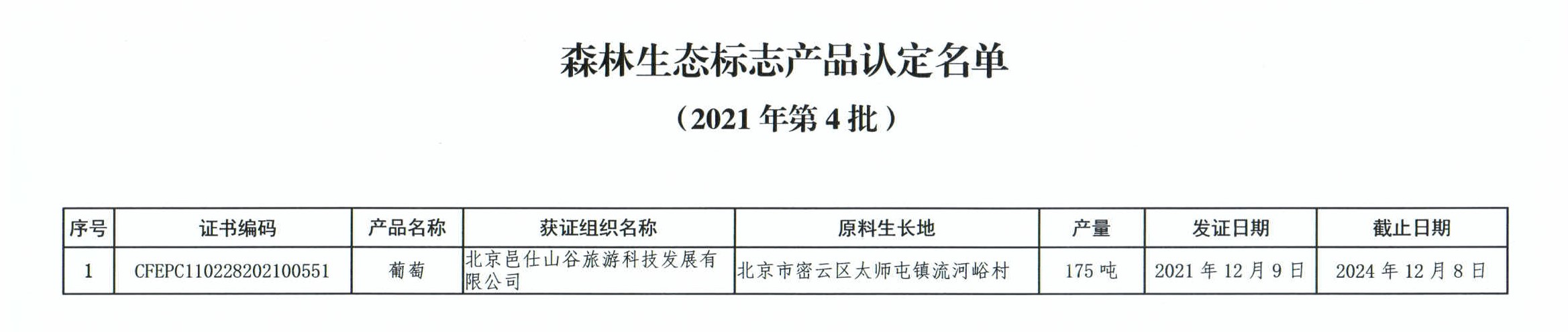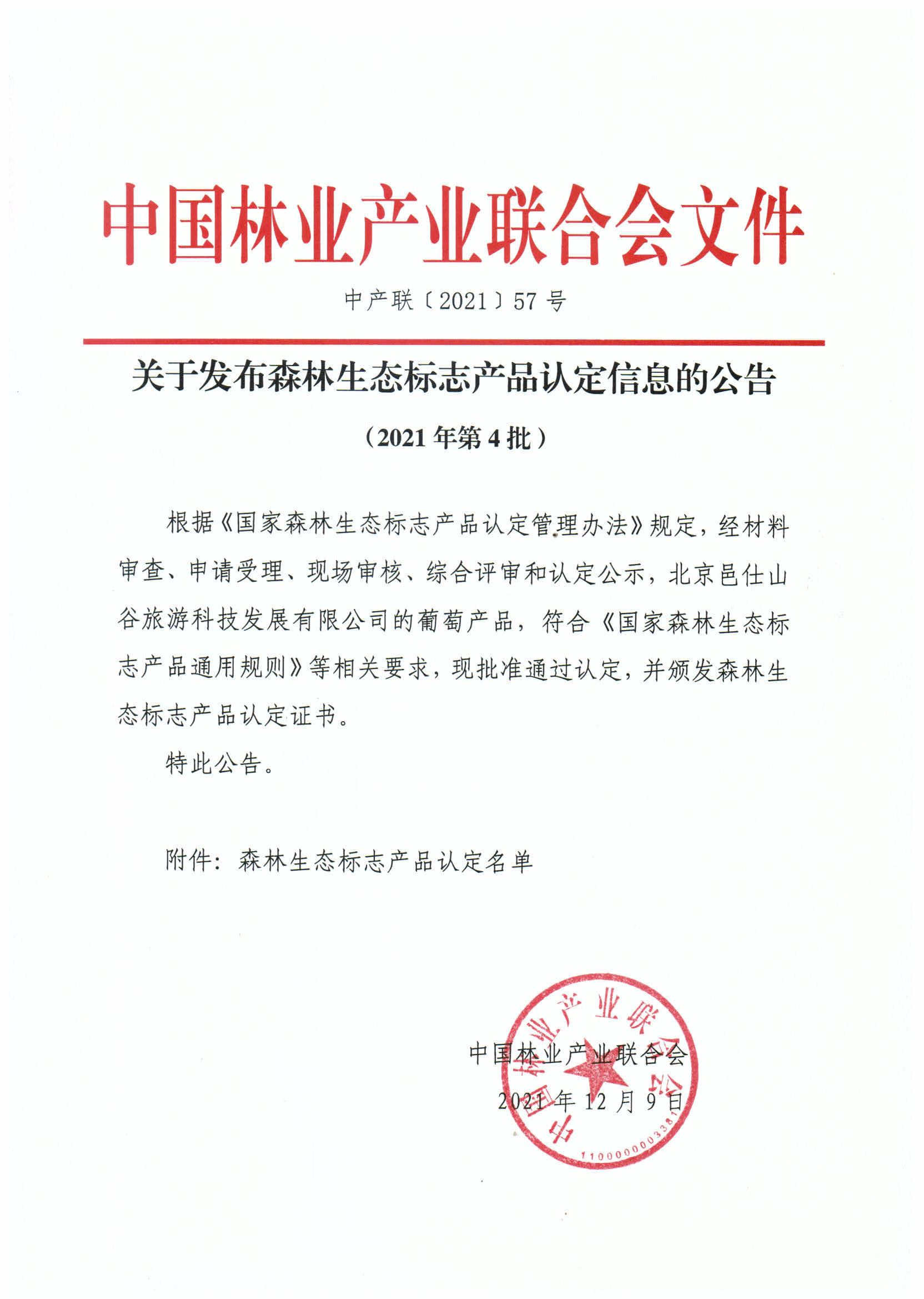 关于发布森林生态标志产品认定信息的公告(2021年第4批)